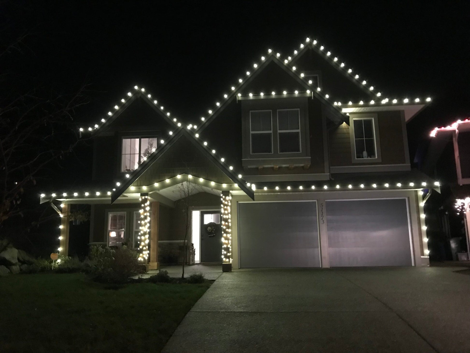 Christmas light luxury - Roofline along gutters, 48" wreath, and walkway for one fee.